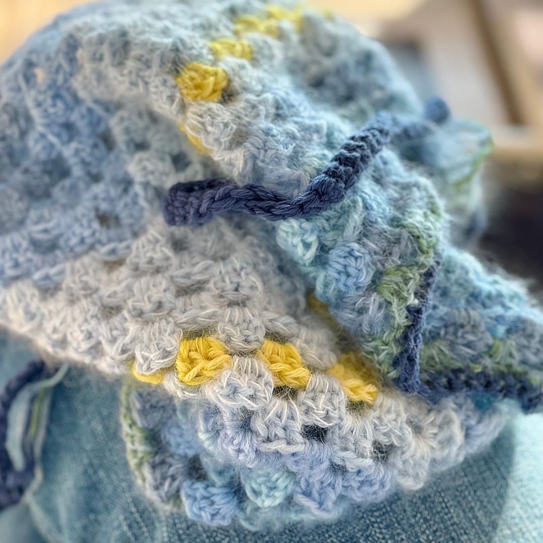 Mohair yarn scraps from your stash, approx. 116g total mohair, crocheted with multiple strands,